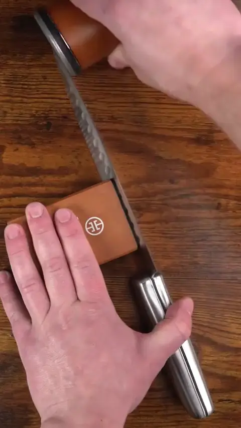 This easy-to-use device restores dull blades to razor-sharpness in seconds.